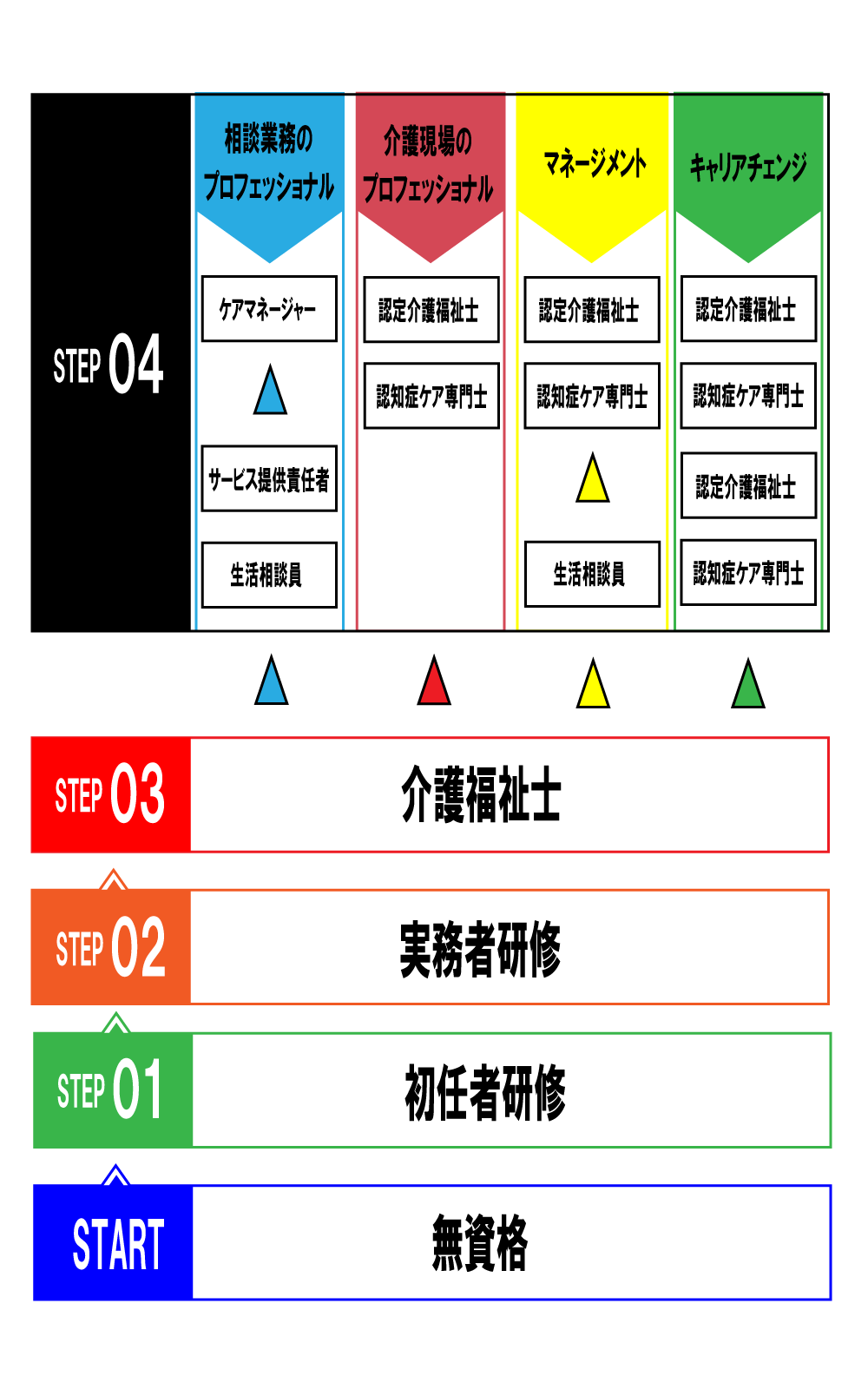 へのキャリアアップ(キャリアチェンジ)をし、介護業界で別の役割を担って活躍することも可能です。